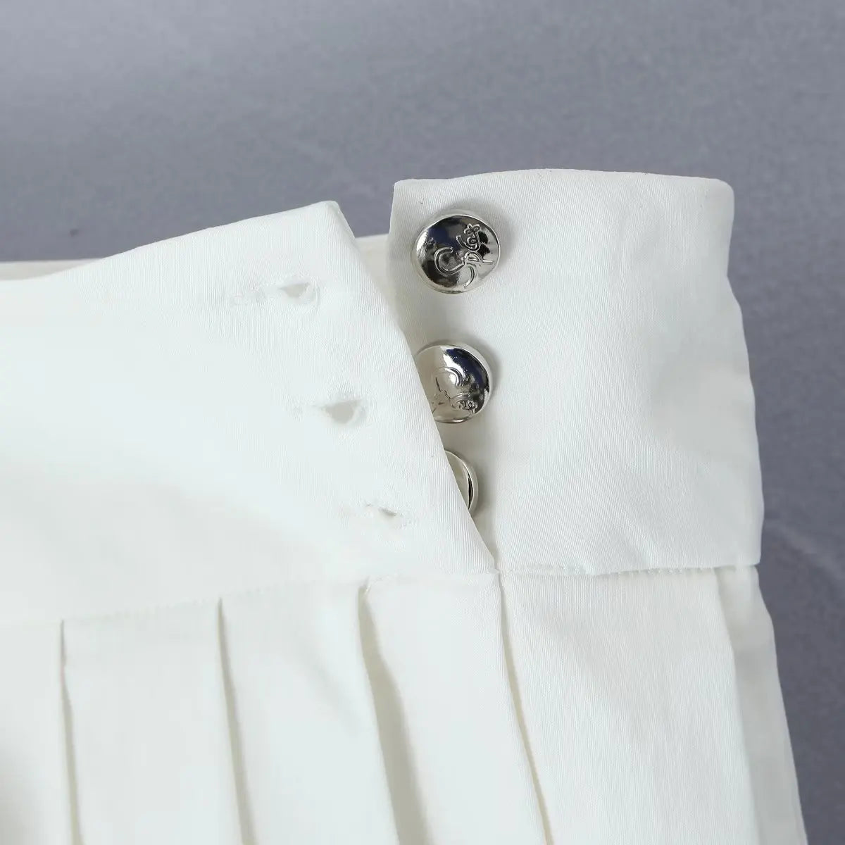 YENKYE 2023 Cool Girl Y2K American Retro Pleated Mini Skirt Sexy Low Waist Side Button Women Summer Skirts With Shorts Lining