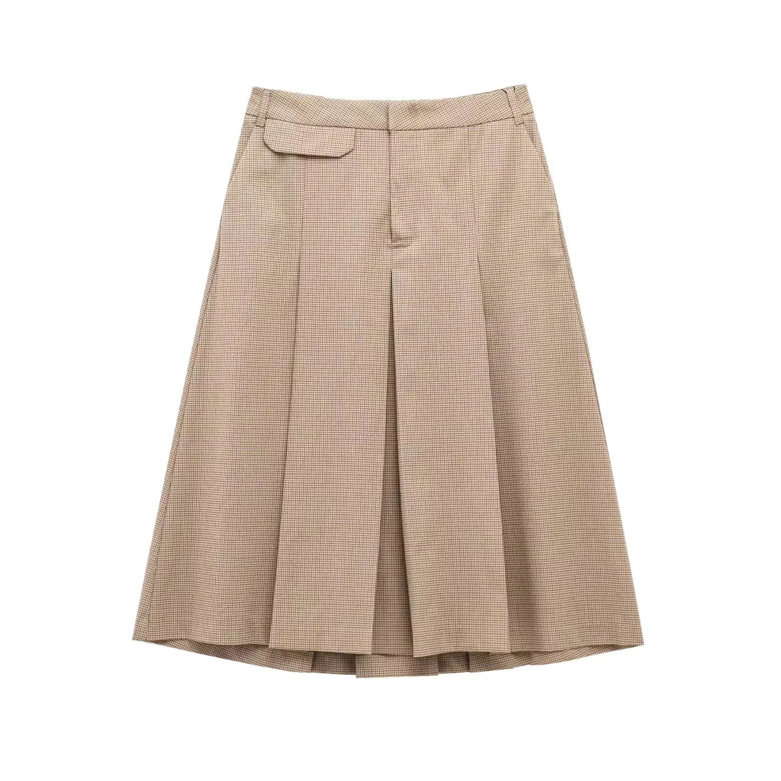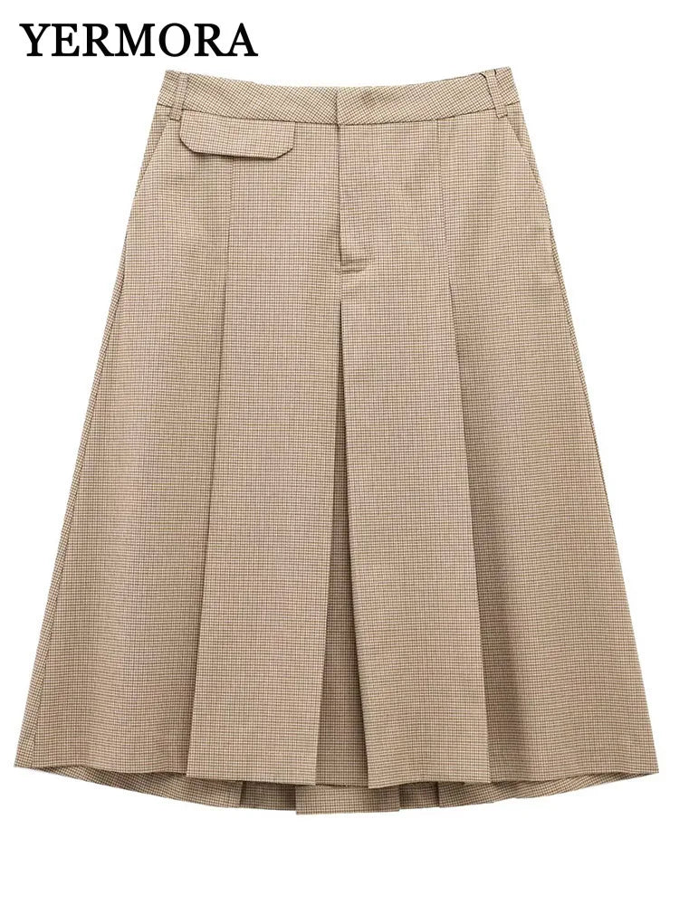 YERMORA high waist khaki plead pleated casual half body skirt for women loose fit fashion tide spring summer 2025 new A470