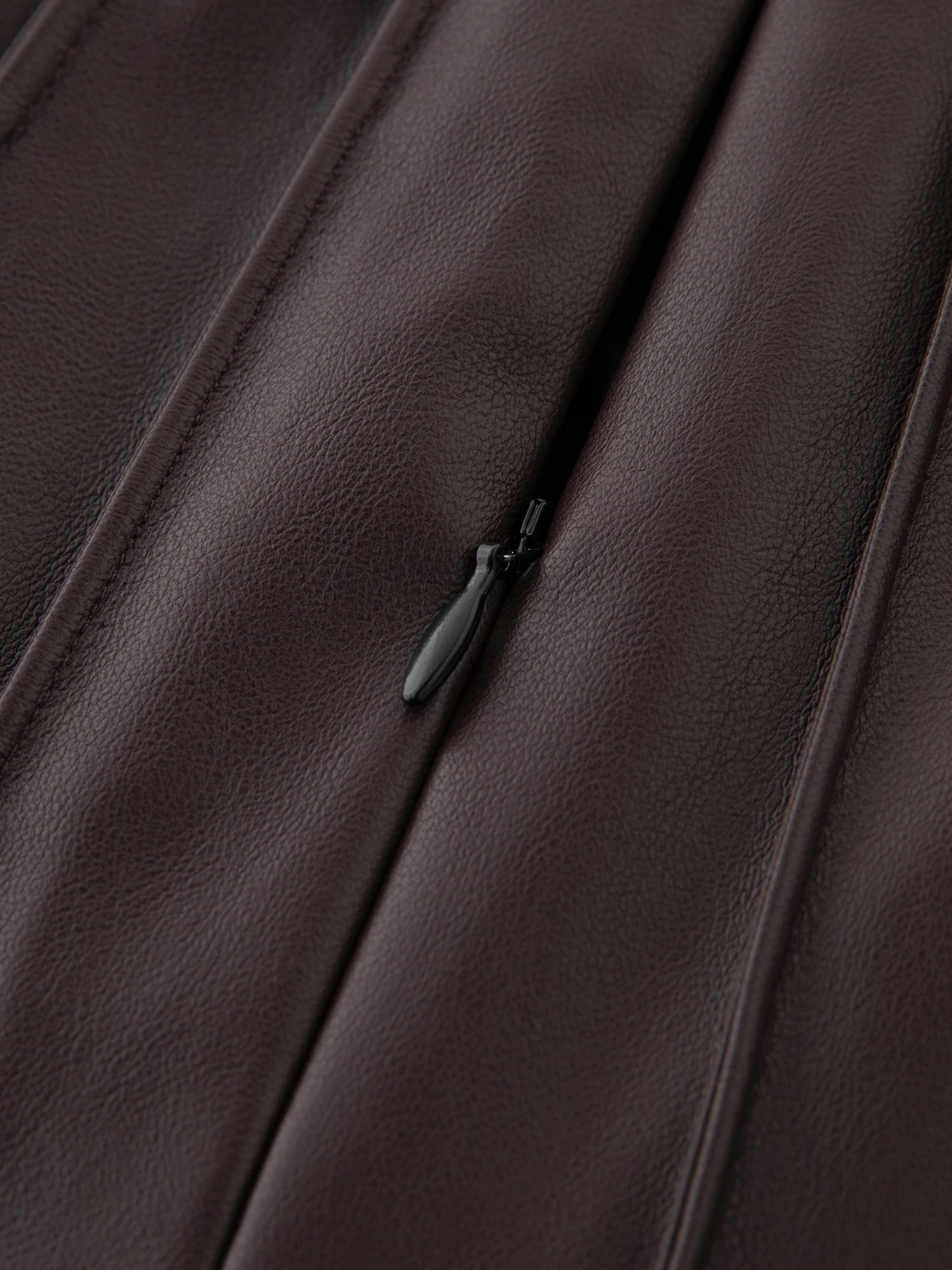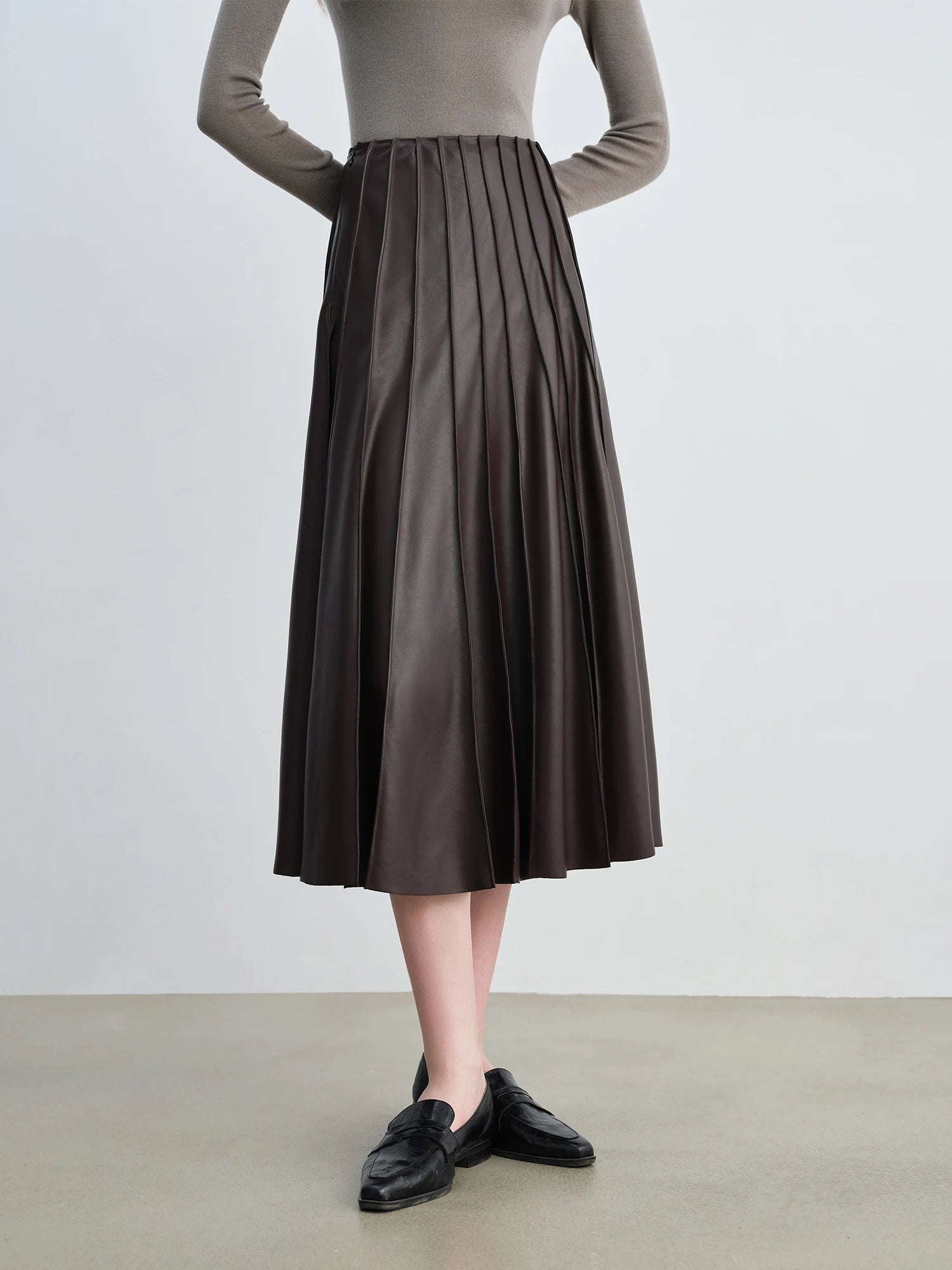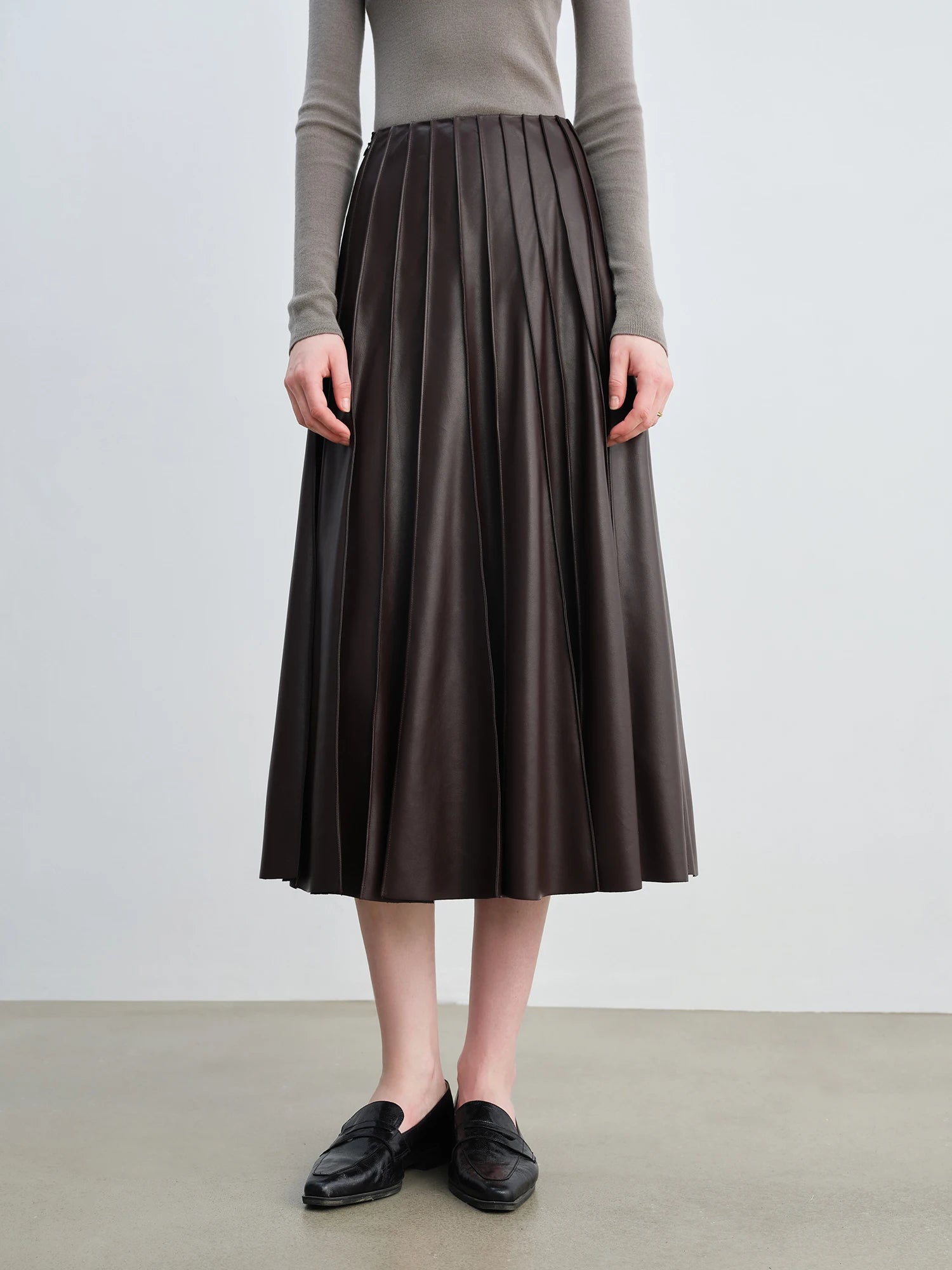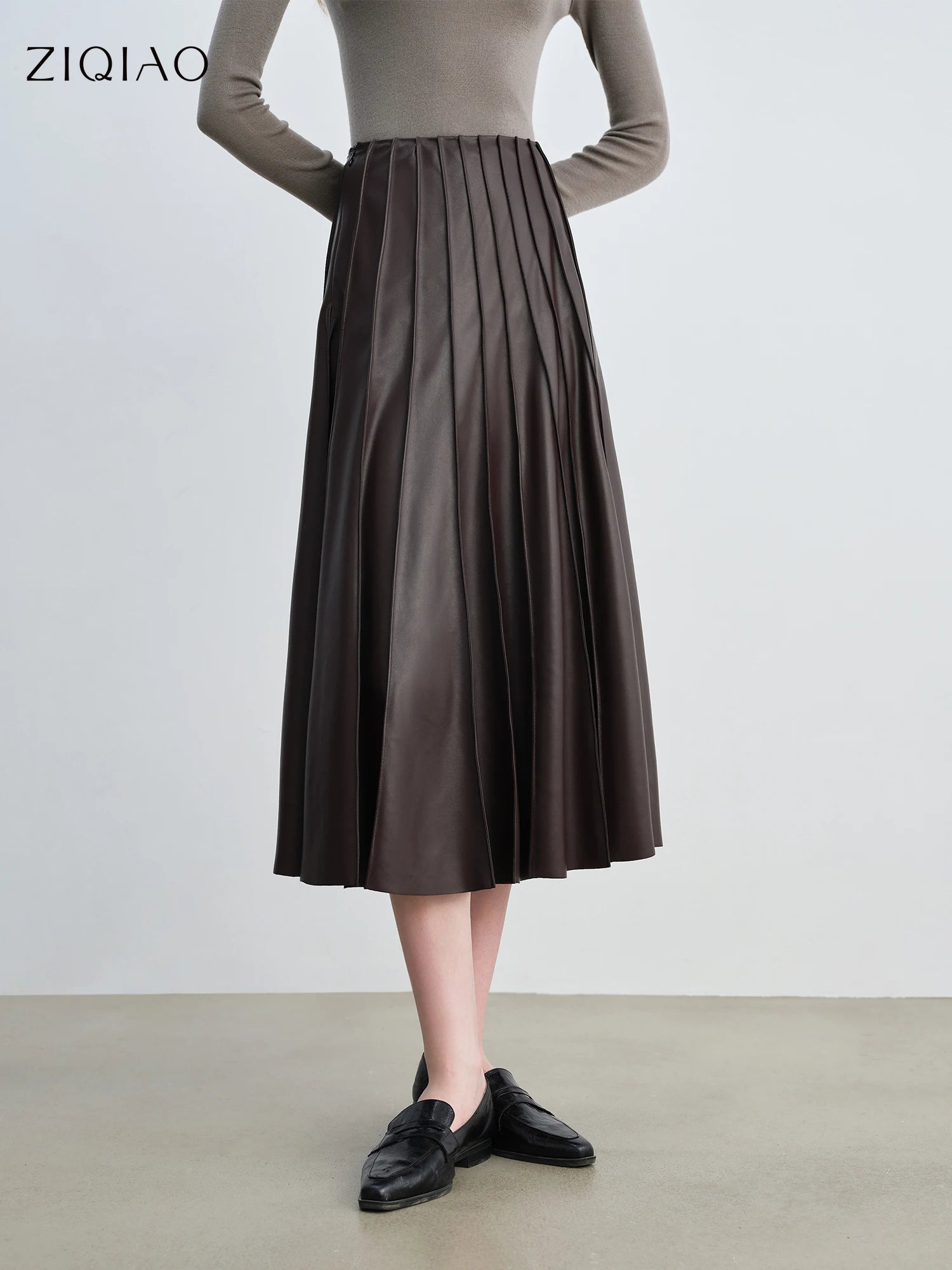 ZIQIAO Petite Women's Cherry Gloss Stylish 3D PU Leather Half Skirt 2025 New Women's A-line Pleated Umbrella Skirt 25ZQ93098