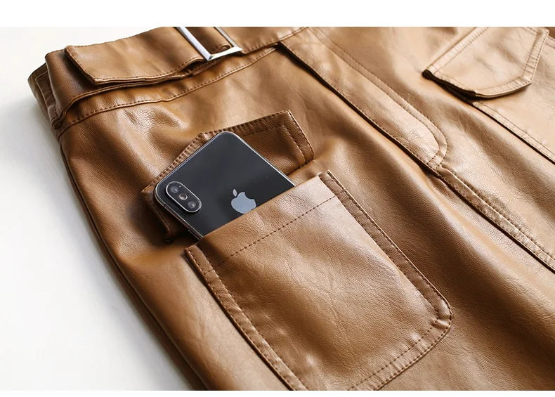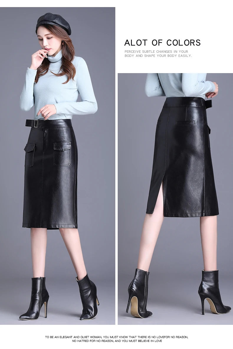 ZUZK Women Knee Length PU Leather Skirt Spring Autumn Solid Color Casual Straight Skirts PU Leather Skirts 3 Colors